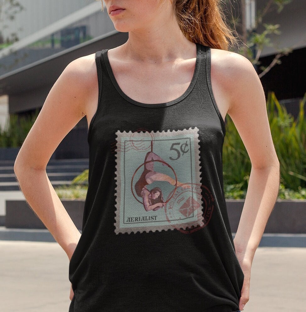 Aerialist Tank Topt, Aerialist Hoop Post Stamp T-shirt, Aerial Dancer Tanks