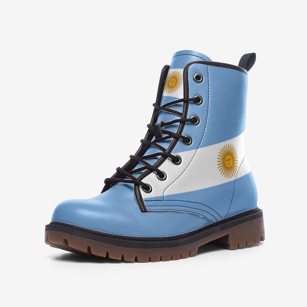 Argentina Flag Boots Argentina Vegan Leather Combat Boots