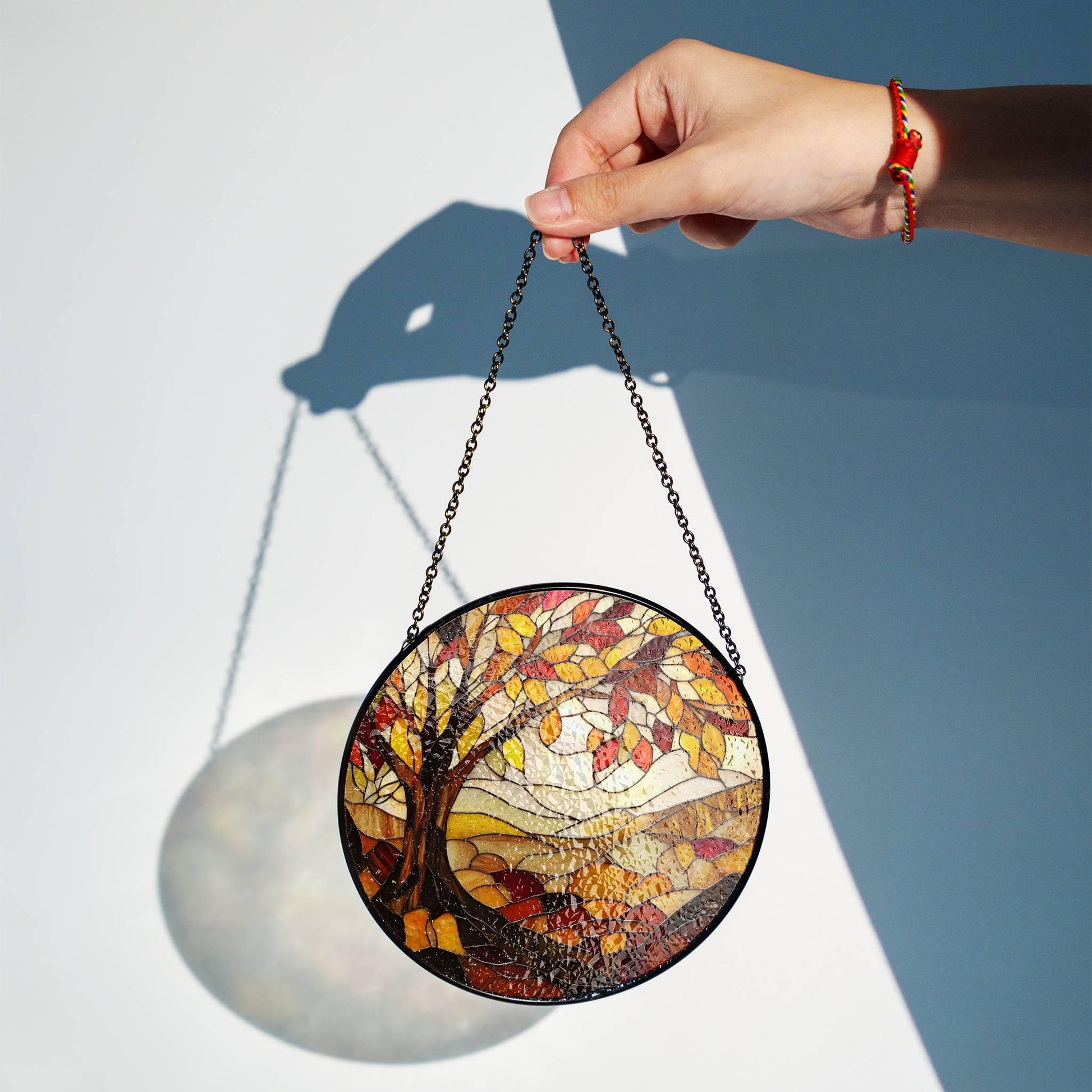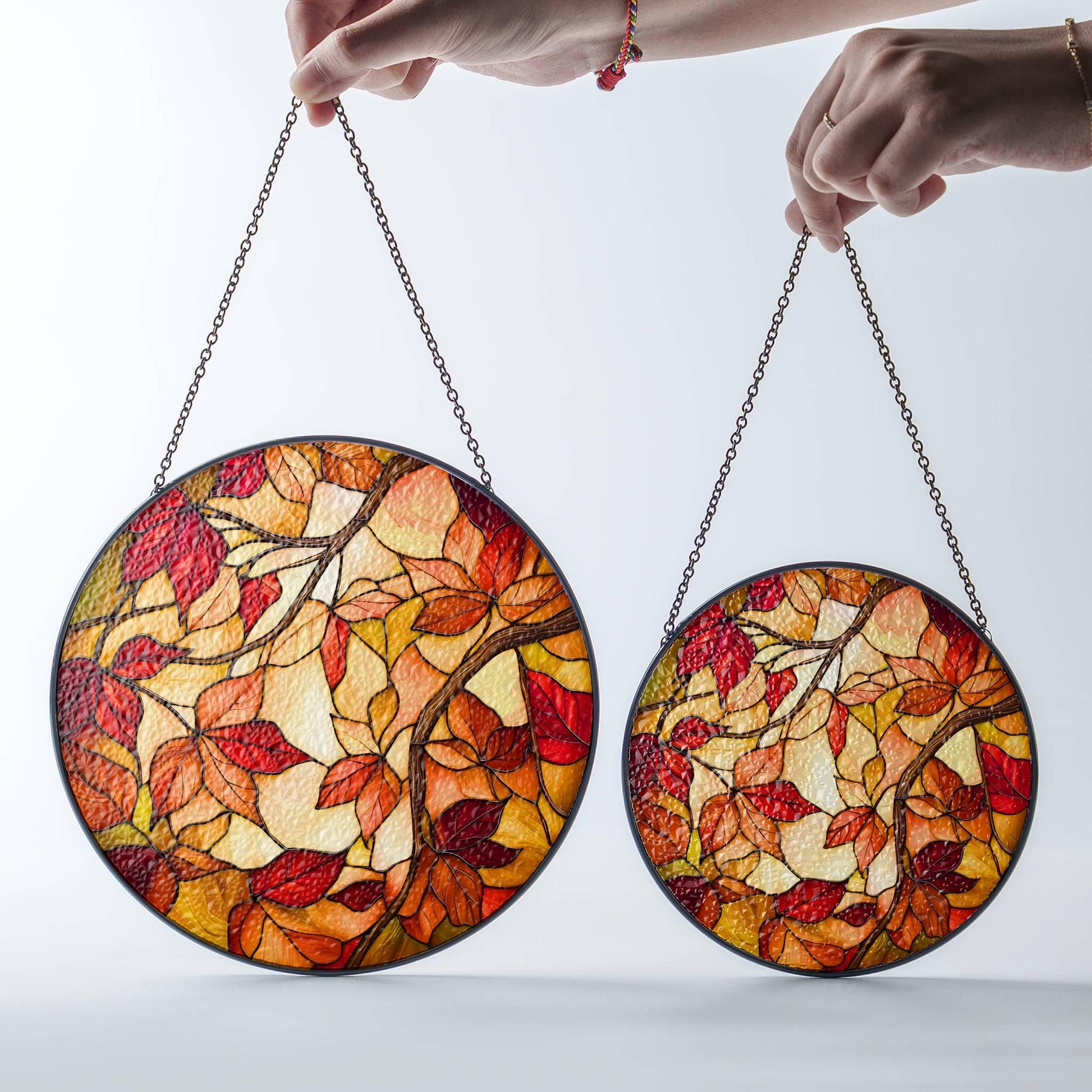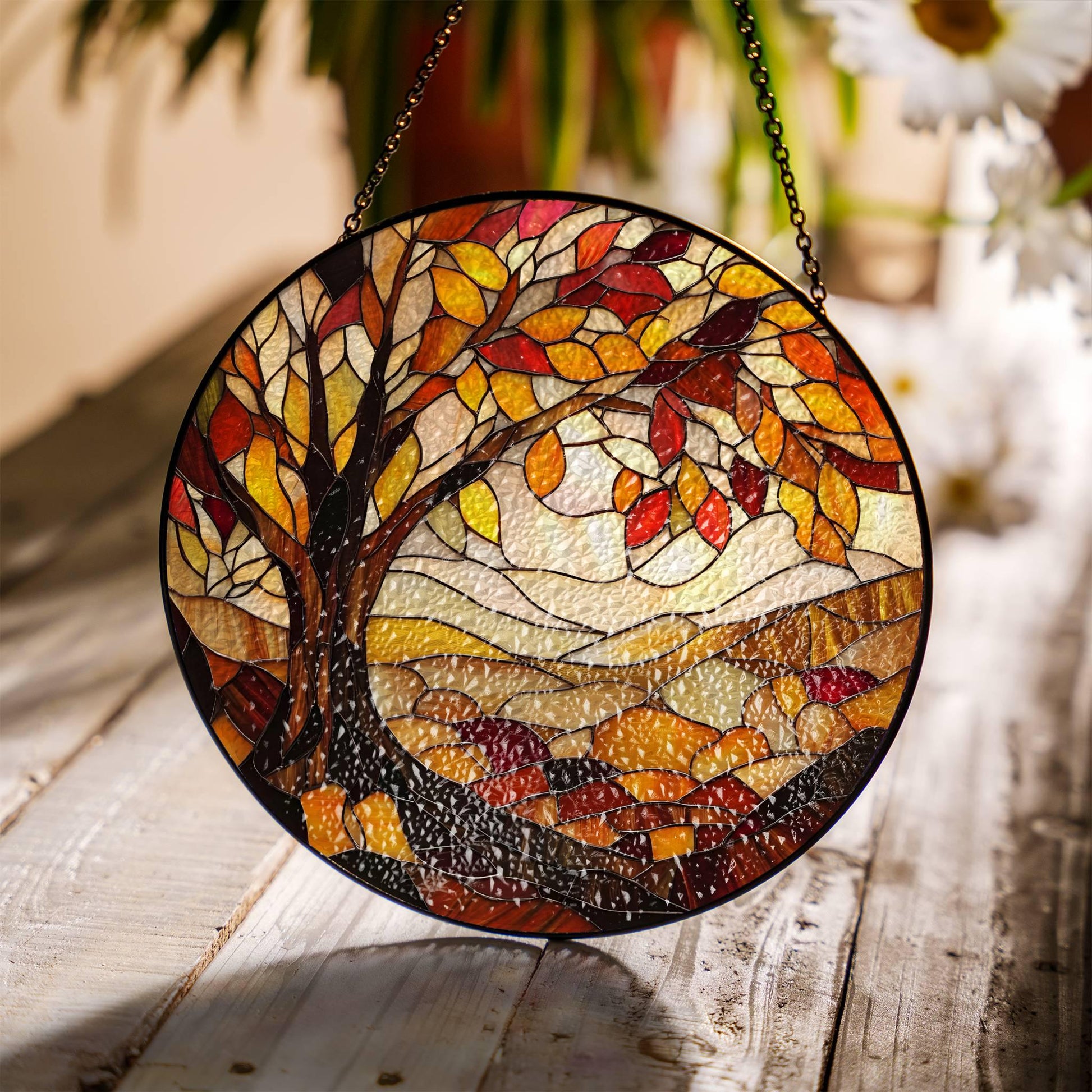 Autumn Stained Glass Sun Catcher Fall Season Light Catcher Window Hanging Autumn Home Decoration Gift
