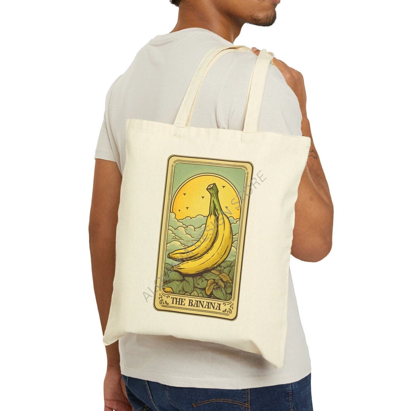 Banana Tote Bag, The Banana Tarot Card Tote Bag Fruit Lover Gifts 15" x 16" Banana Lover Gifts Canvas Bag