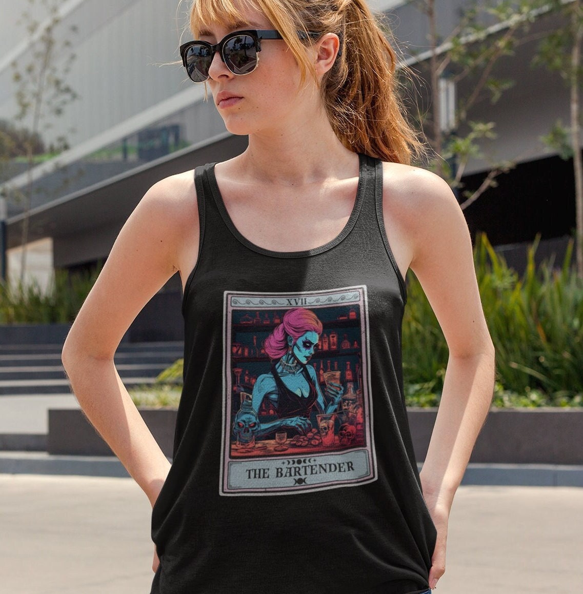 Bartender Tank Top, The Bartender Tarot Card Tank Top, Bartending Woman Shirt, Woman Bartender Tanks