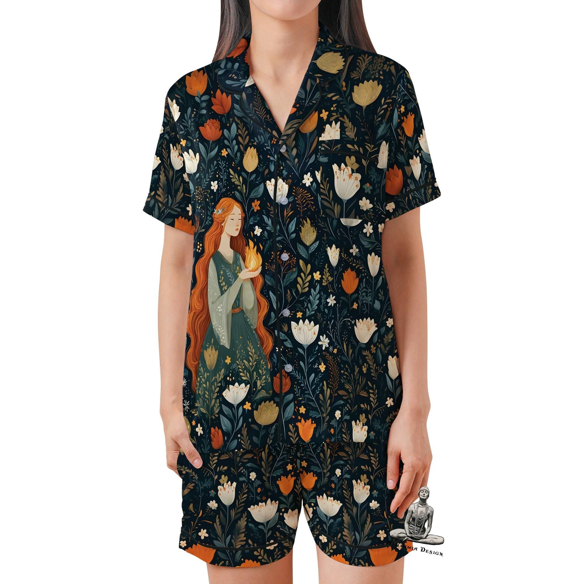 Brigid Pajamas Set Short Sleeves, Brigit Celtic Goddess Woman's Satin Pajama