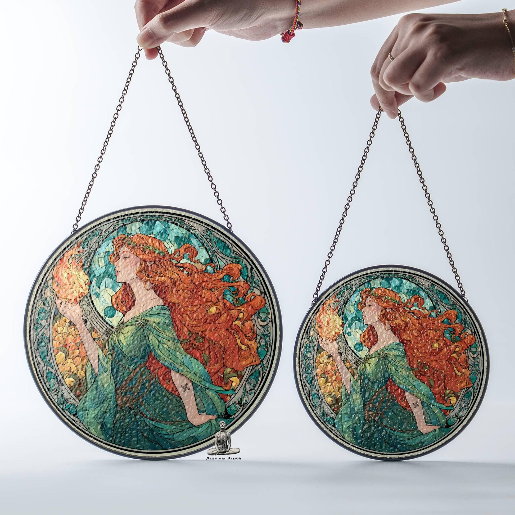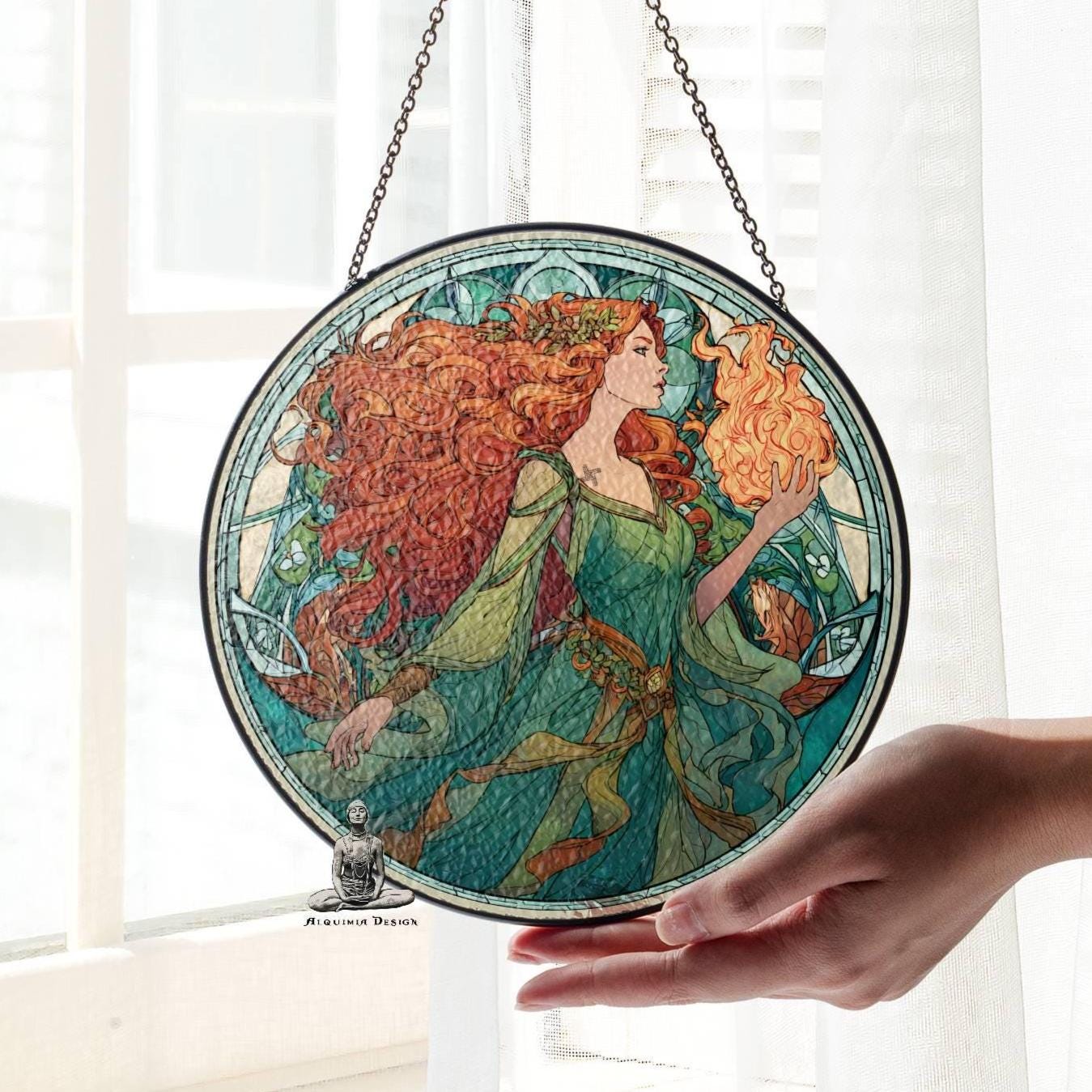 Brigid Stained Glass SunCatcher - Irish Celtic Goddess Window Hanging Decor