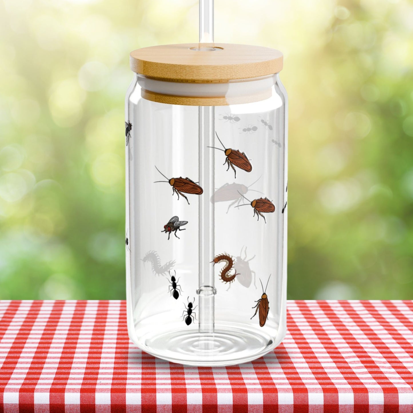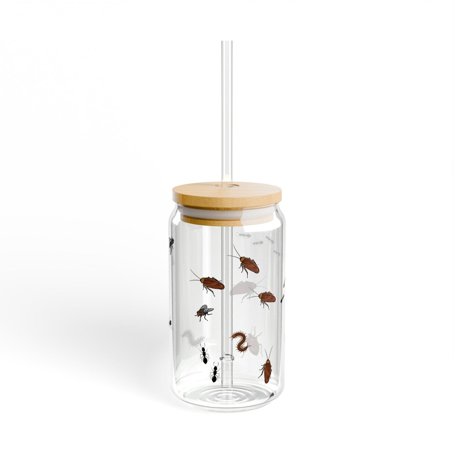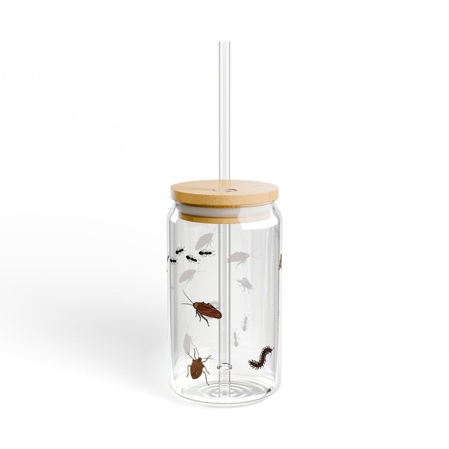 Bug Glass Tumbler Sipper Glass 16oz Insect Tumbler with Bamboo Lid Bug Lover Can Glass Cup Insect Nature Lover