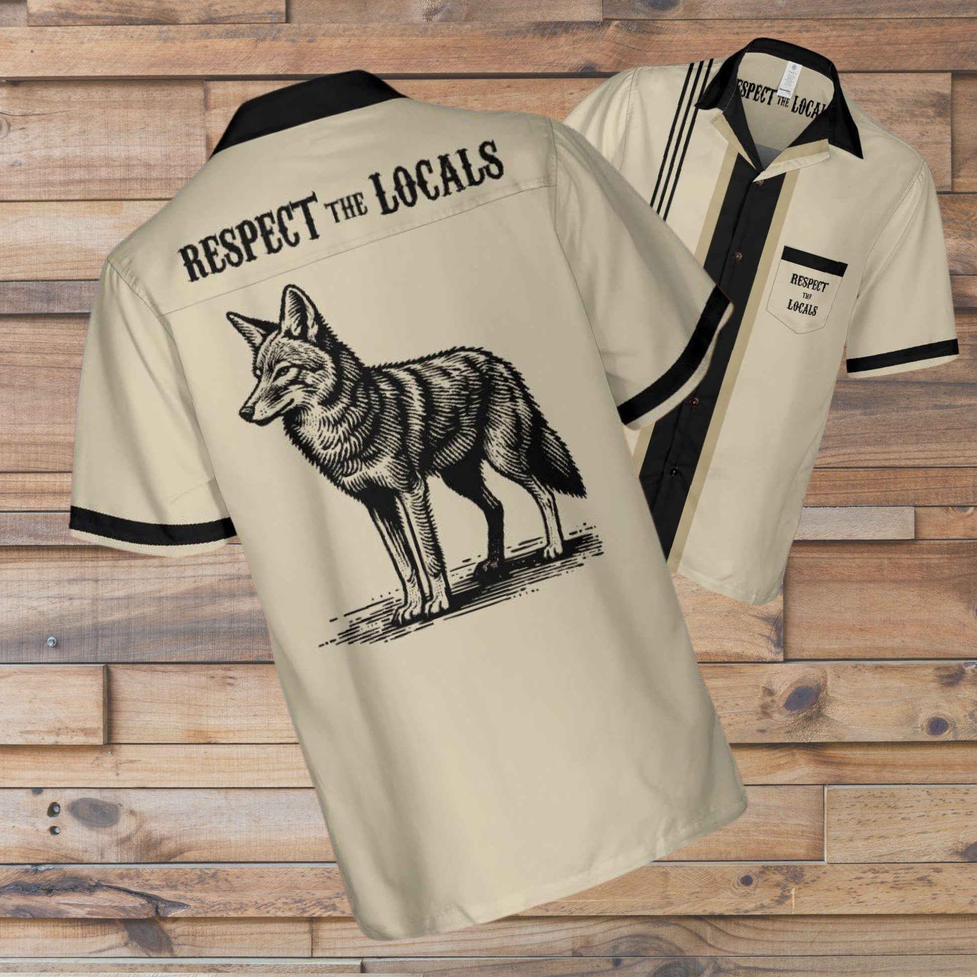 Coyote Button Up Shirt with Pocket, Coyote Respect The Locals Hawaiian Shirt Coyote Bowling Shirt