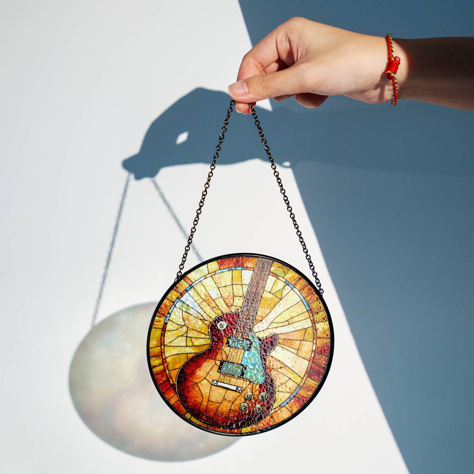 Guitar Stained Glass Sun Catcher - Electric Guitar Window Hanging Decor