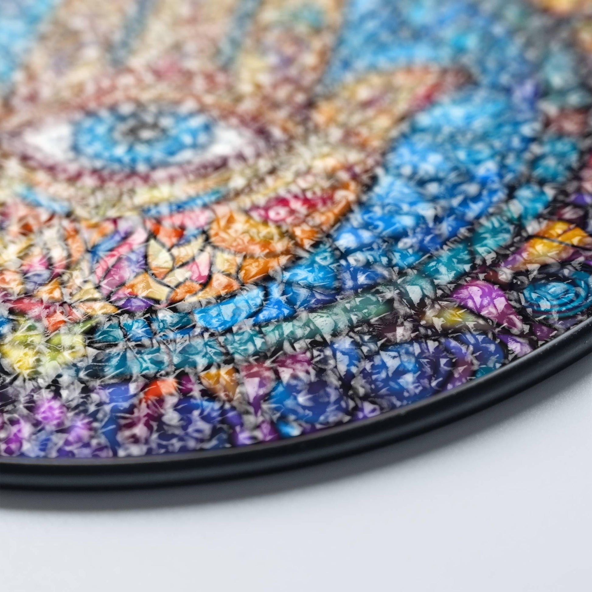 Hamsa Hand Stained Glass Sun Catcher - Hand of Fatima Window Hanging Decor