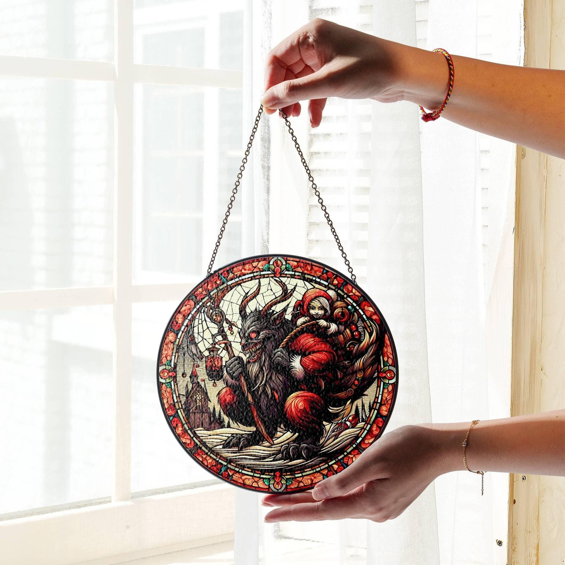 Krampus Suncatcher - Faux Stained Glass Christmas Window Decor