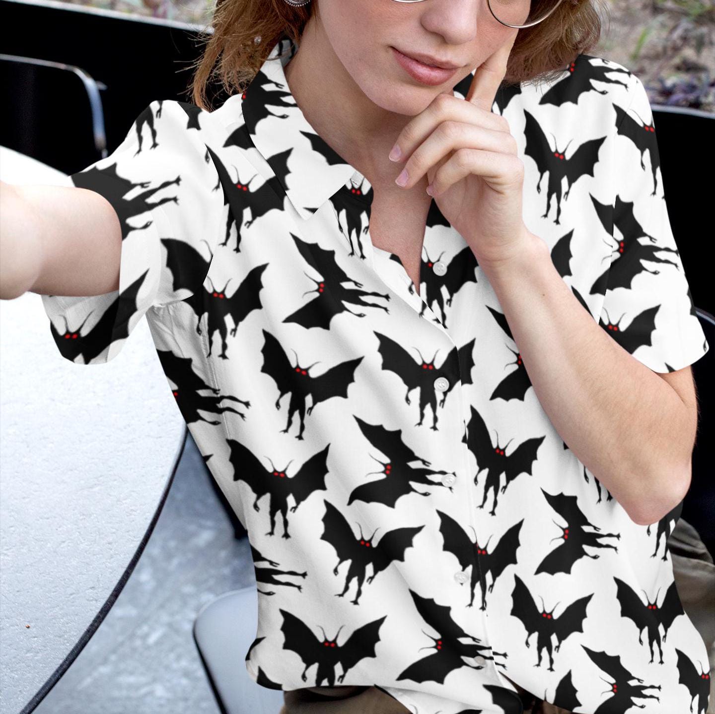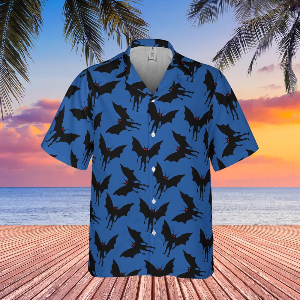 Mothman Hawaiian Shirt, Moth man Cryptid Shirt, Mothman West Virginia Cryptozoology Button Down
