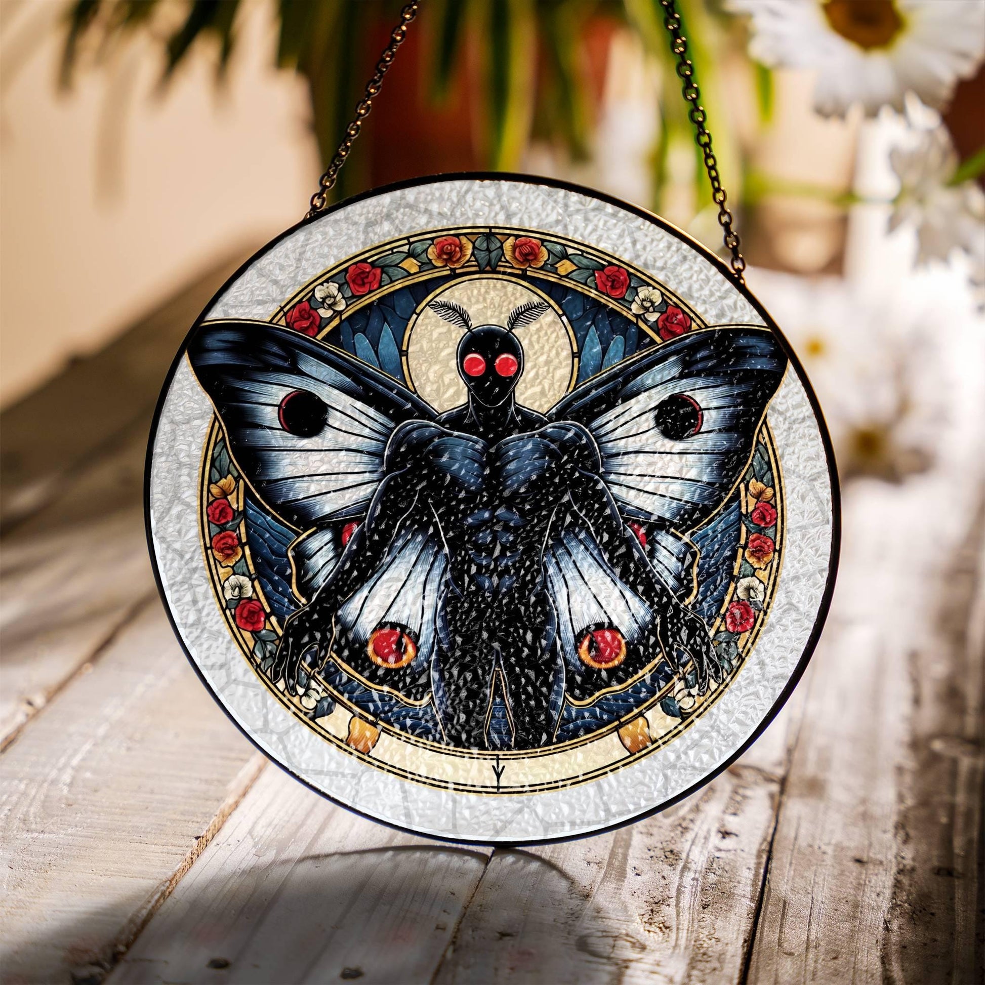 Mothman Stained Glass SunCatcher Mothman Cryptid Window Hanging Home Art