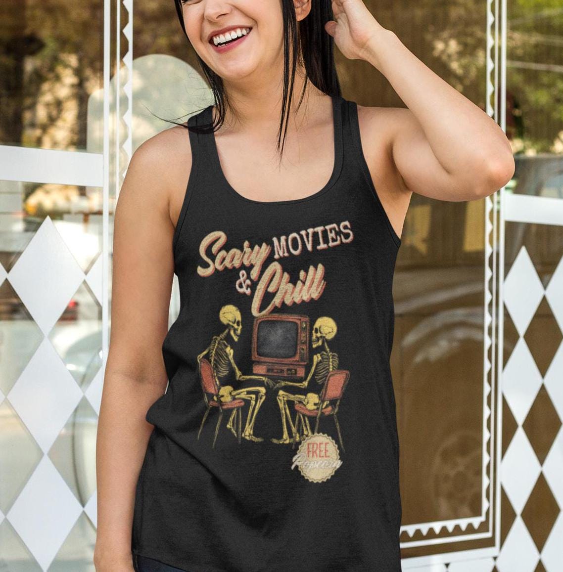 Scary Movies & Chill Tank, Halloween Tank Top, Trendy Vintage Inspired Shirt