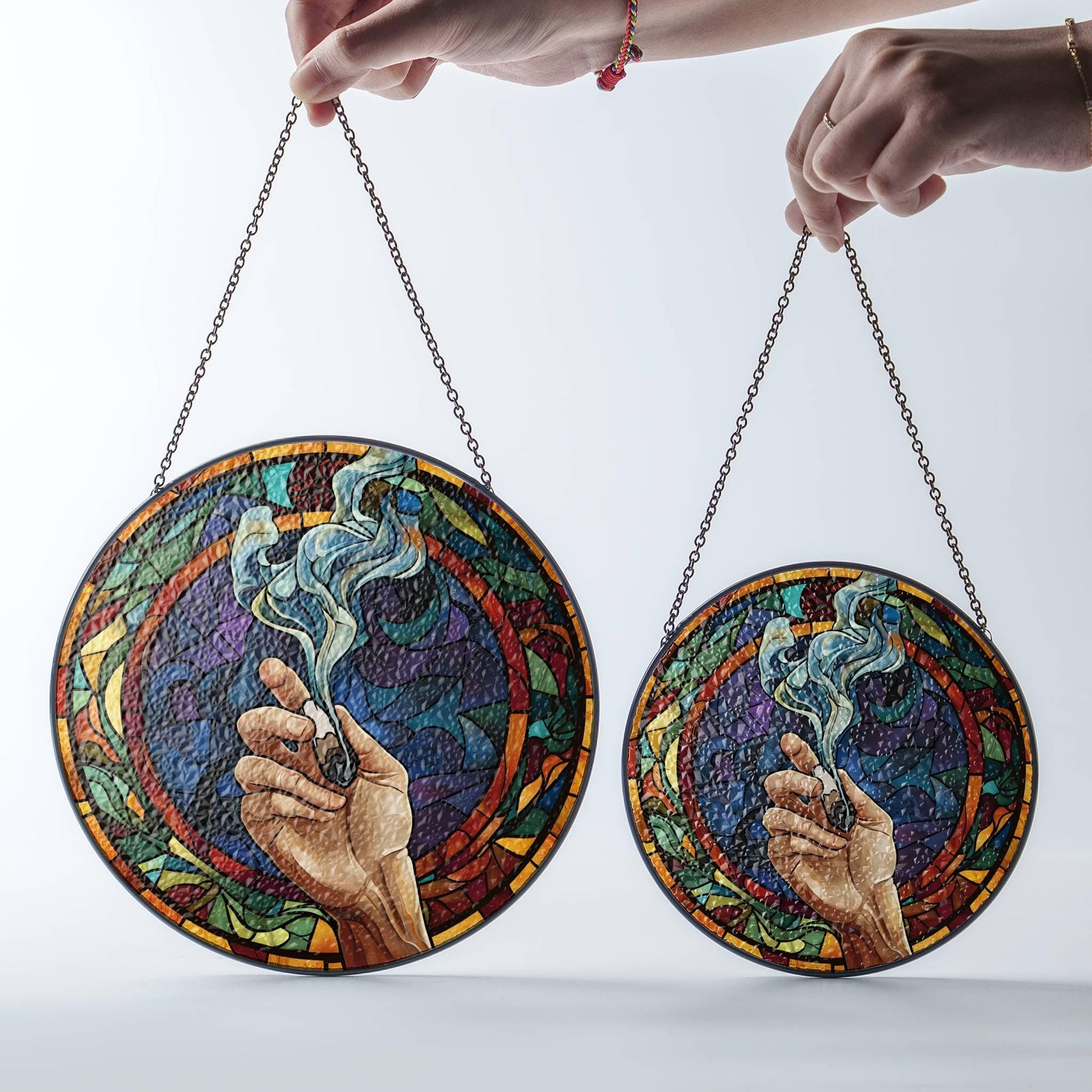 Stained Glass Marijuana Leaf Sun Catcher - Cannabis Window Hanging Decor
