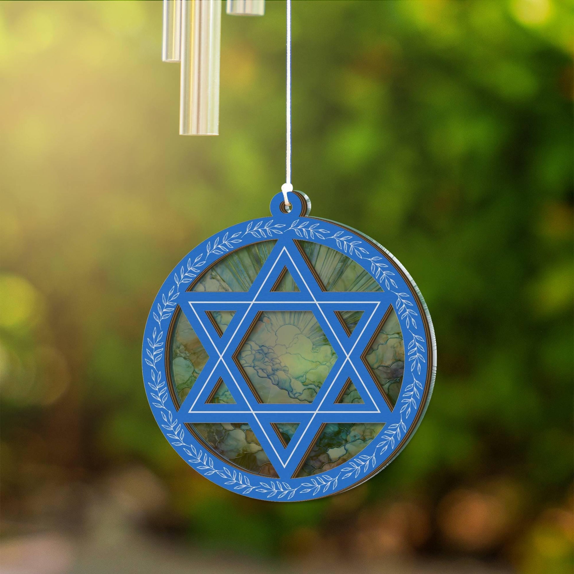 Star of David Wind Chime - Jewish Suncatcher Home Decor Hanukkah Israel Colors