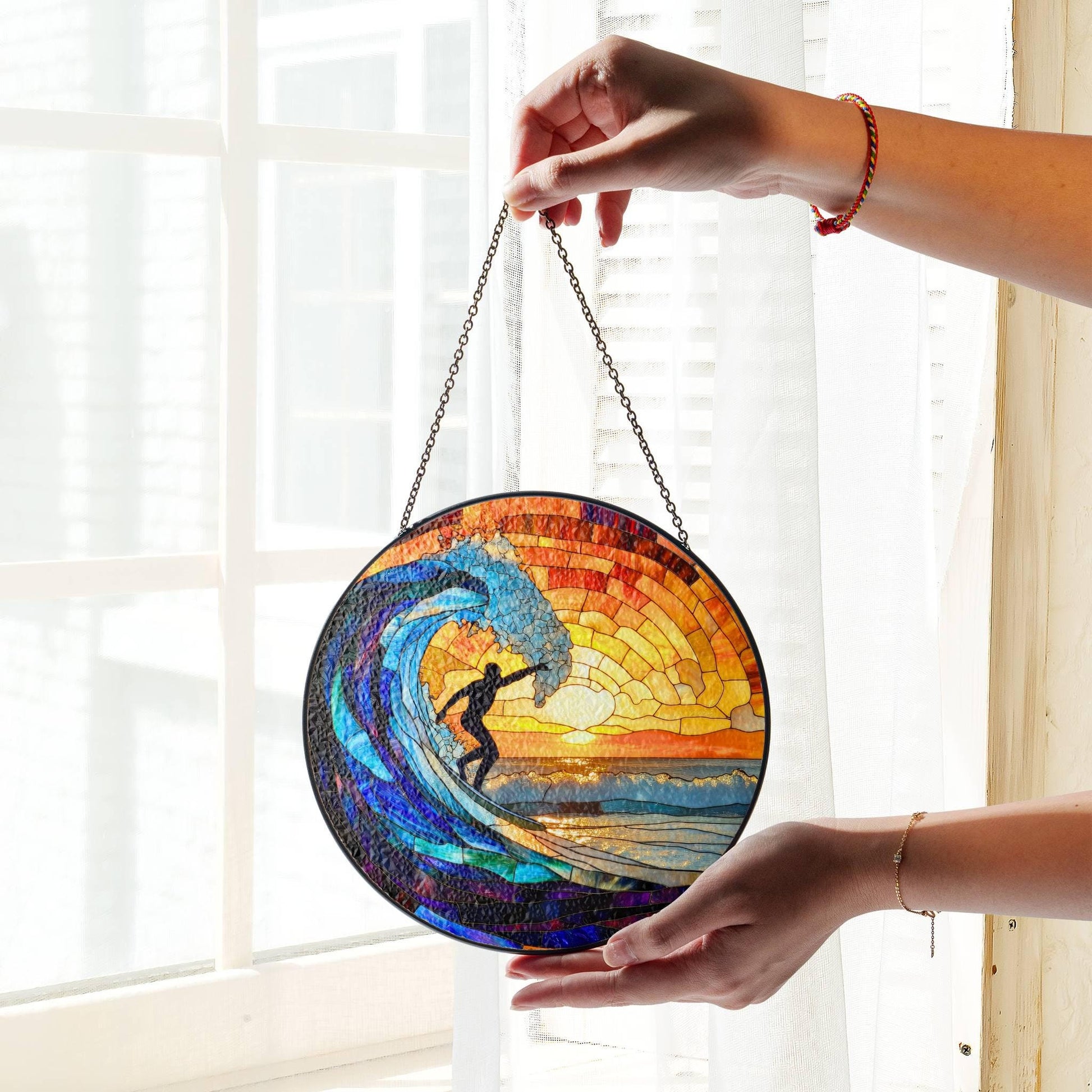 Surfing Suncatcher Stained Glass Surf Light Catcher Surfer Beach Sunset Decor
