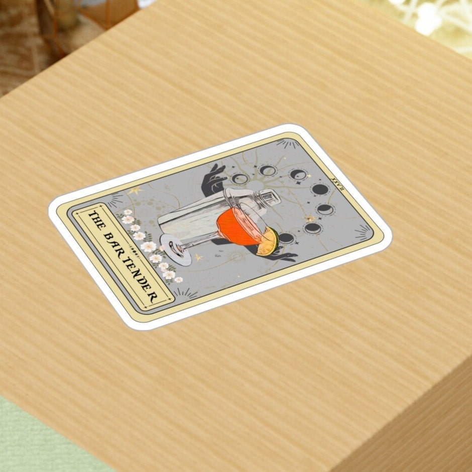 Bartender Stickers, The Bartender Tarot Card Sticker, Bartending Sticker Cocktail Waterproof UV Resistant Sticker