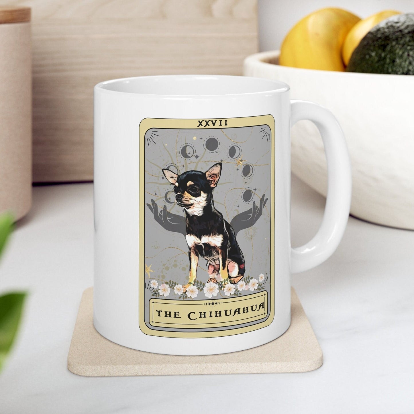 Chihuahua Mug, Chihuahua Tarot Card Mug, Black Chihuahua Mom Gift Chihuahua Dad Gifts Chihuahua Lover Coffee Mug Chihuahua Owner Gifts