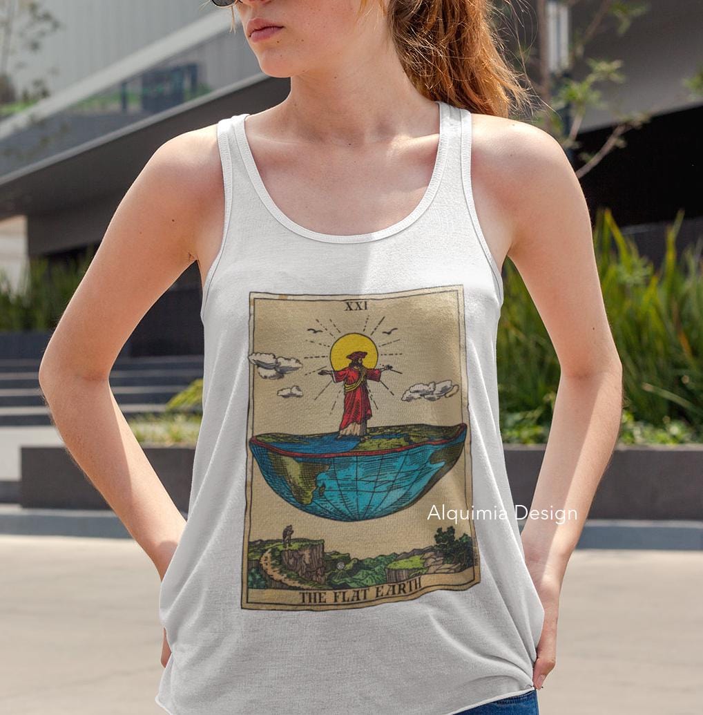 The Flat Earth Tarot Card Tank Top, Flat Earth Shirt, Conspiracy Theory T-shirt Funny Tarot