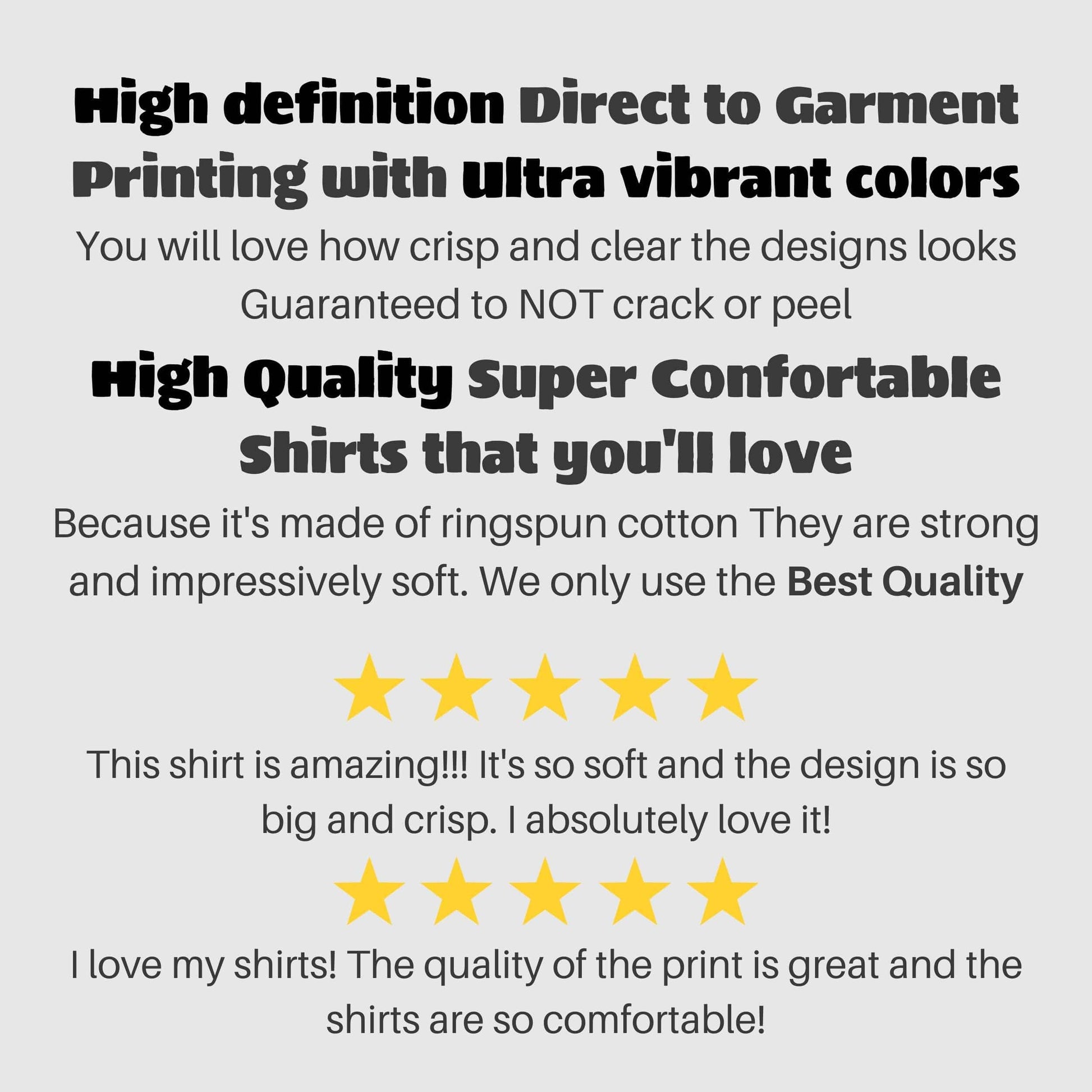 - 100% ring-spun Cotton (Heather tees are a soft cotton poly blend)