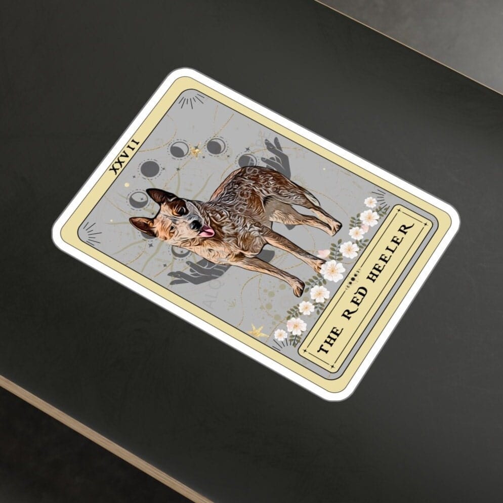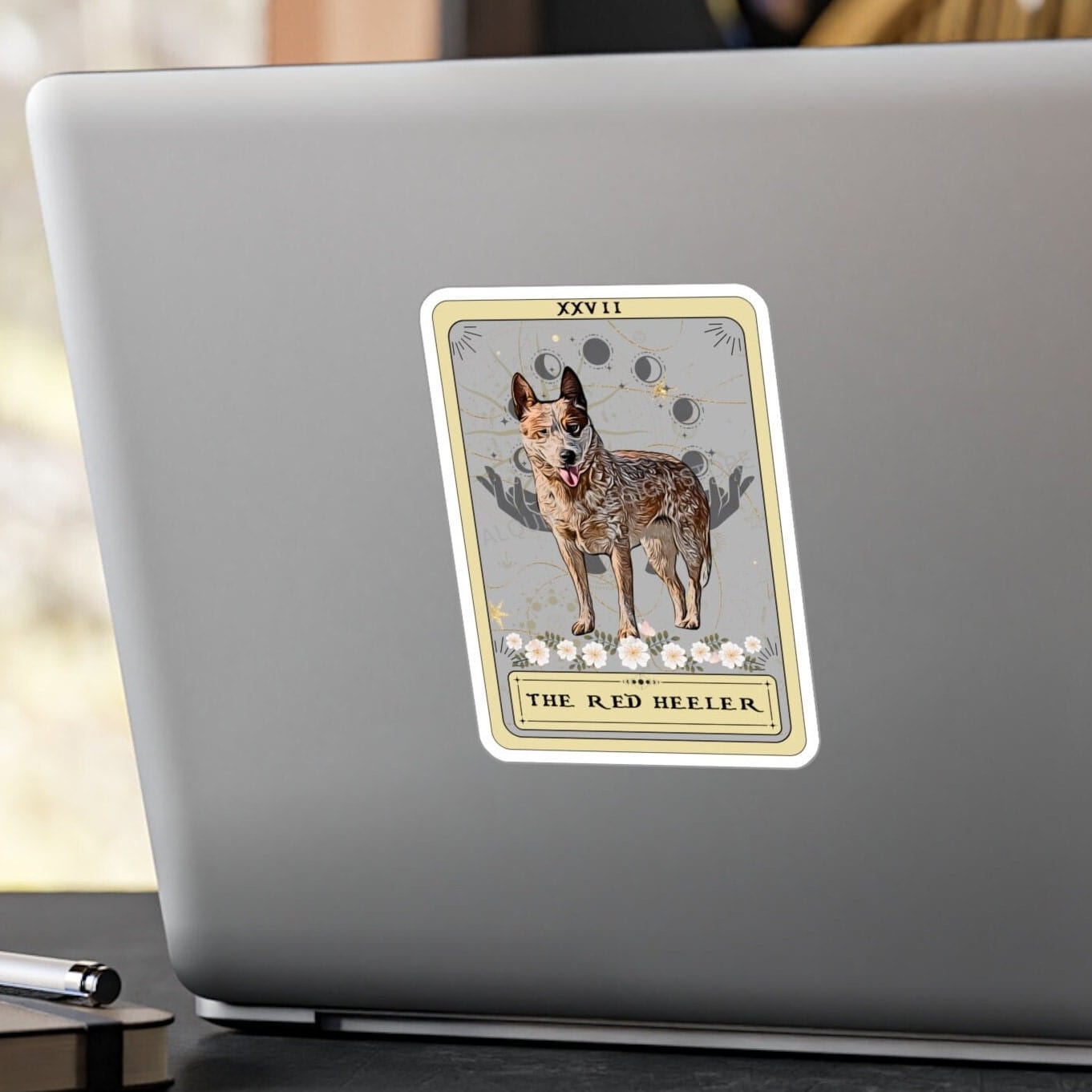 Red Heeler Dog Sticker, The Red Heeler Tarot Card Sticker 3" x 4" Vinyl Sticker Waterproof UV Resistant Dog Lover Stickers