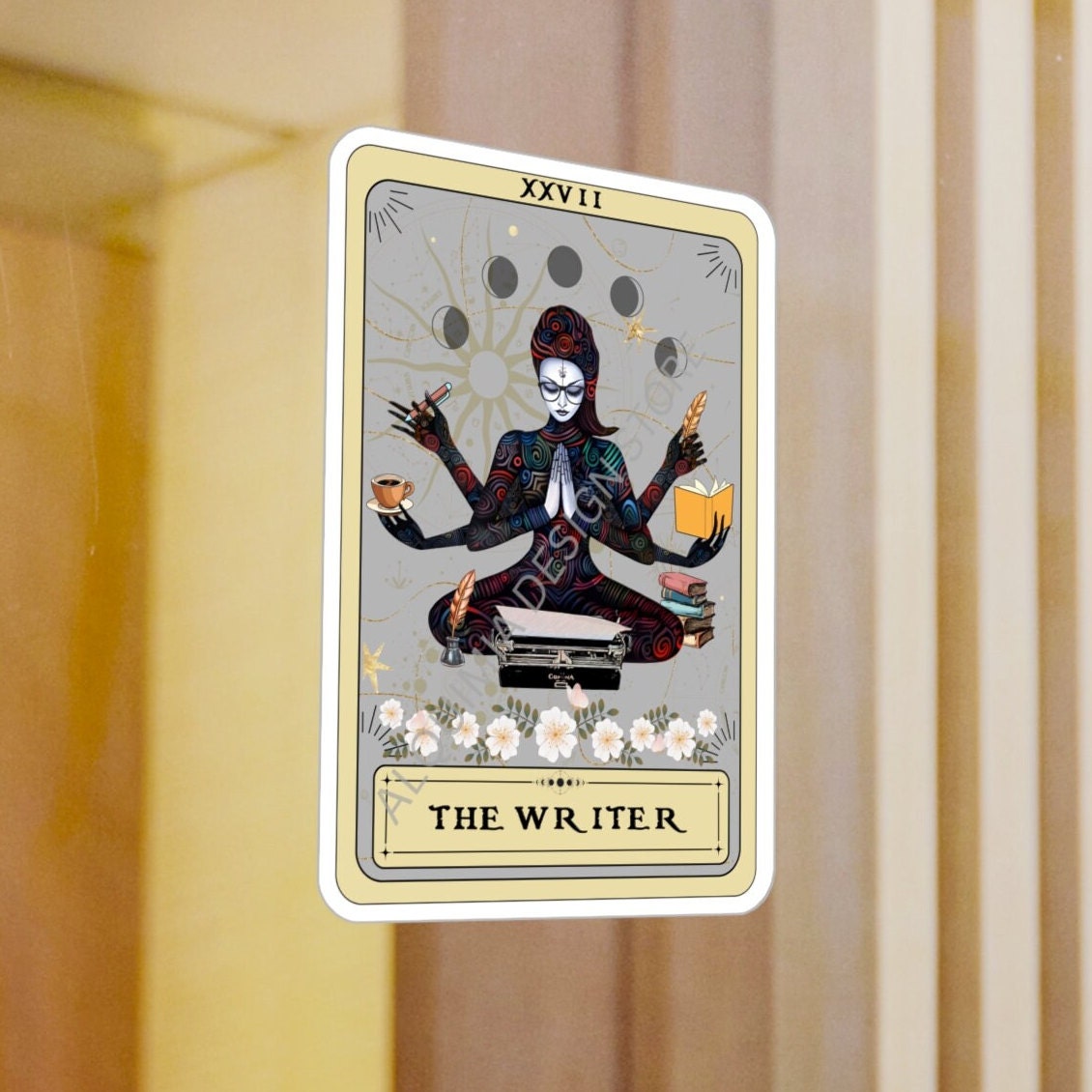 Writing Stickers, The Writer Tarot Card Sticker 3" x 4" Vinyl Sticker Waterproof UV Resistant Author Writer Laptop Sticker Writing Goddess