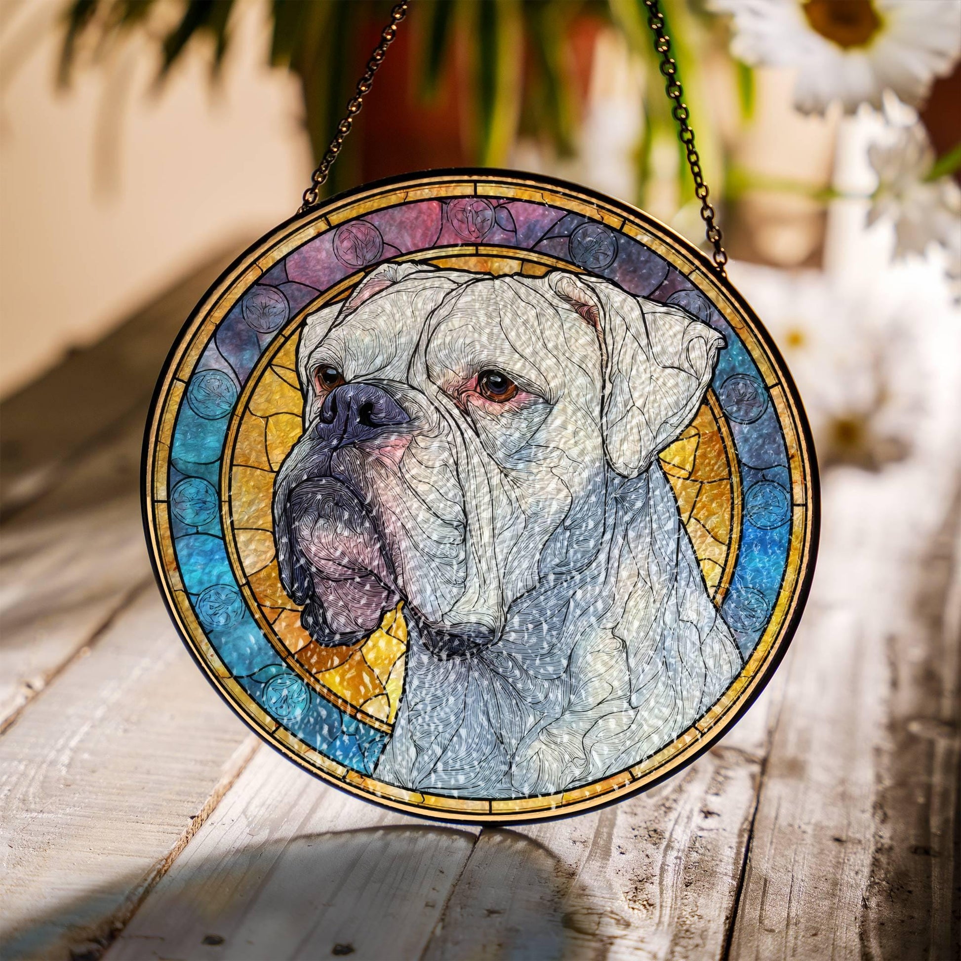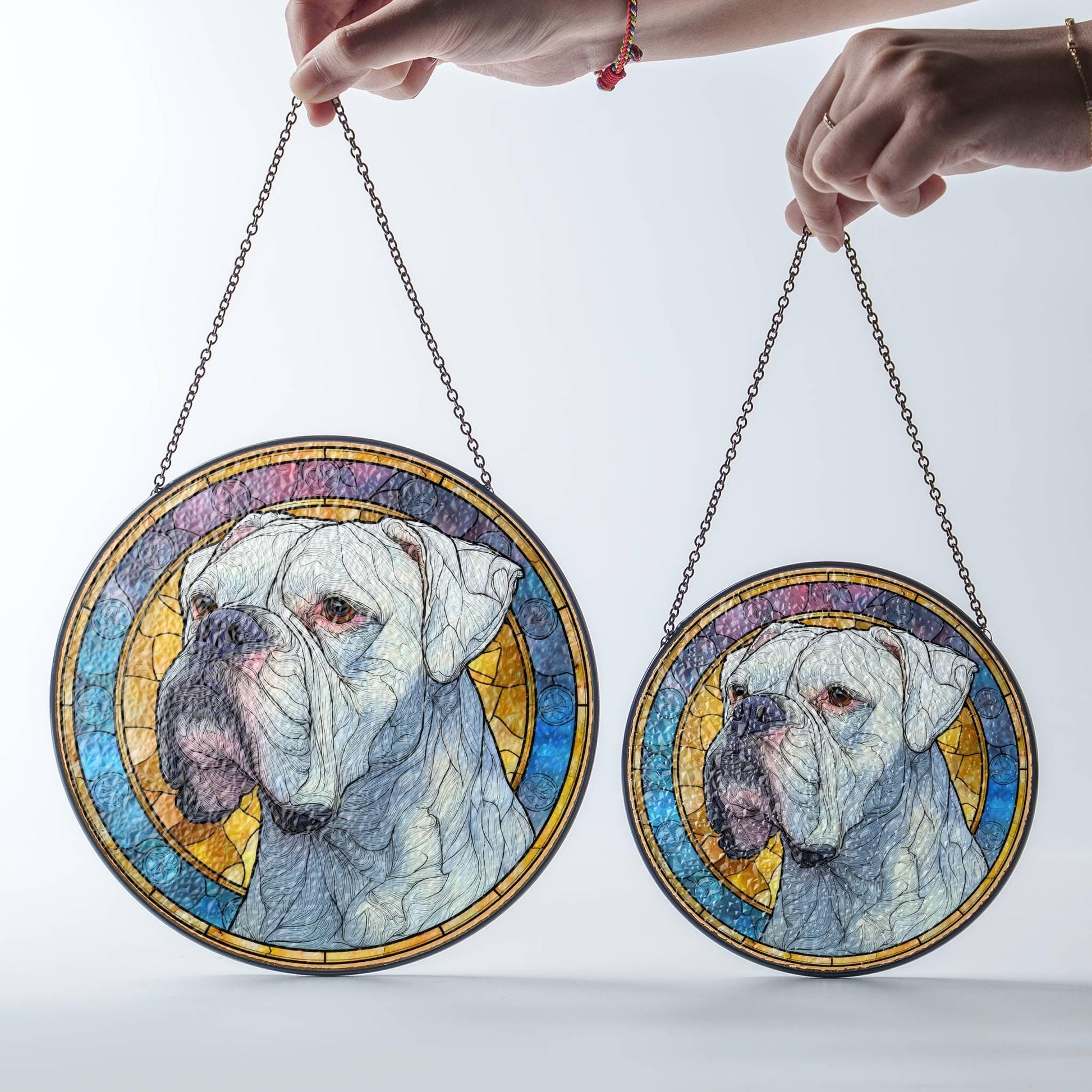 White Boxer Stained Glass Sun Catcher - Dog Light Catcher Window Decoration