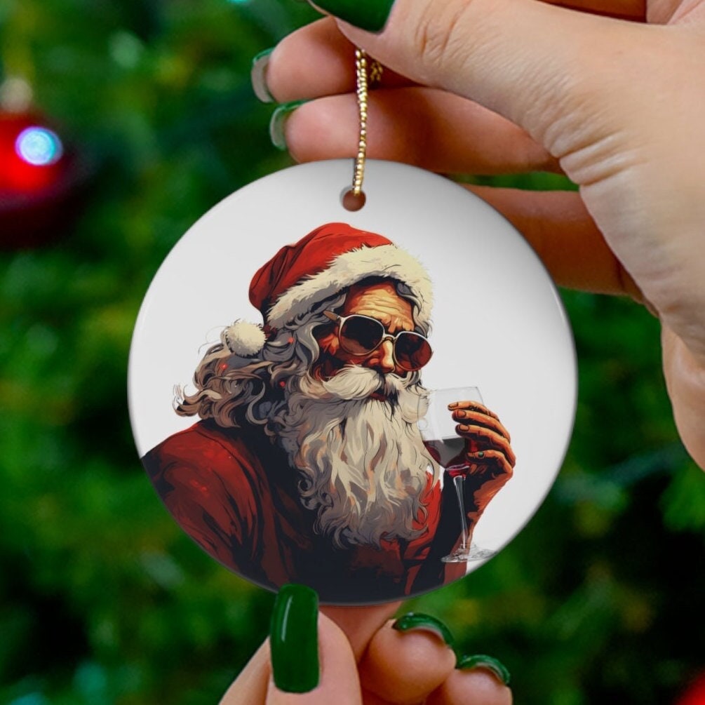 Wine Christmas Ornament Santa Claus Holding Red Wine Christmas Ceramic Ornament